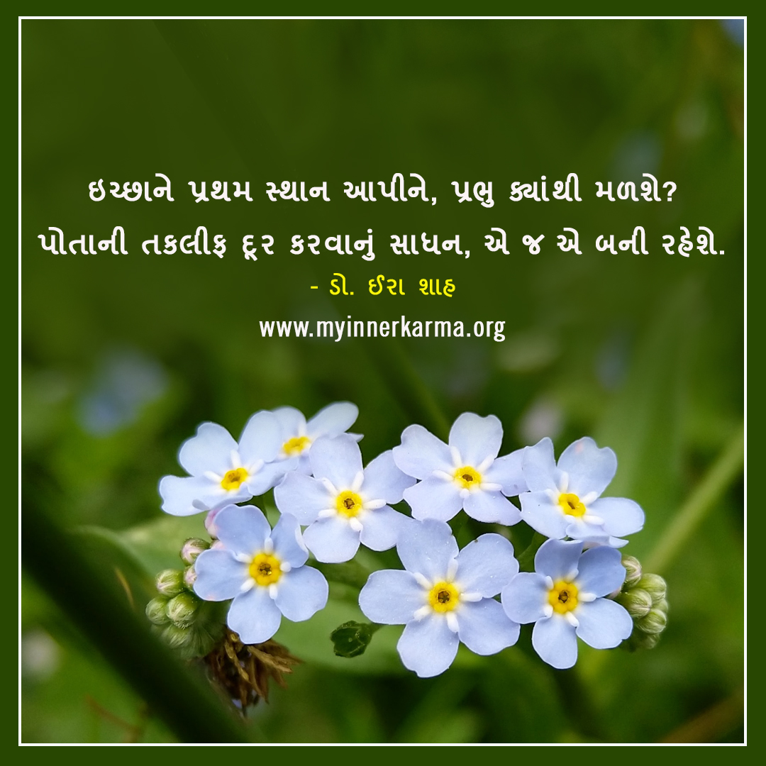ઇચ્છાને પ્રથમ સ્થાન આપીને, પ્રભુ ક્યાંથી મળશે? પોતાની તકલીફ દૂર કરવાનું સાધન, એ જ એ બની રહેશે. https://www.myinnerkarma.org/quotes/detail.aspx?title=ichchhane-prathama-sthana-apine-prabhu-kyanthi-malashe